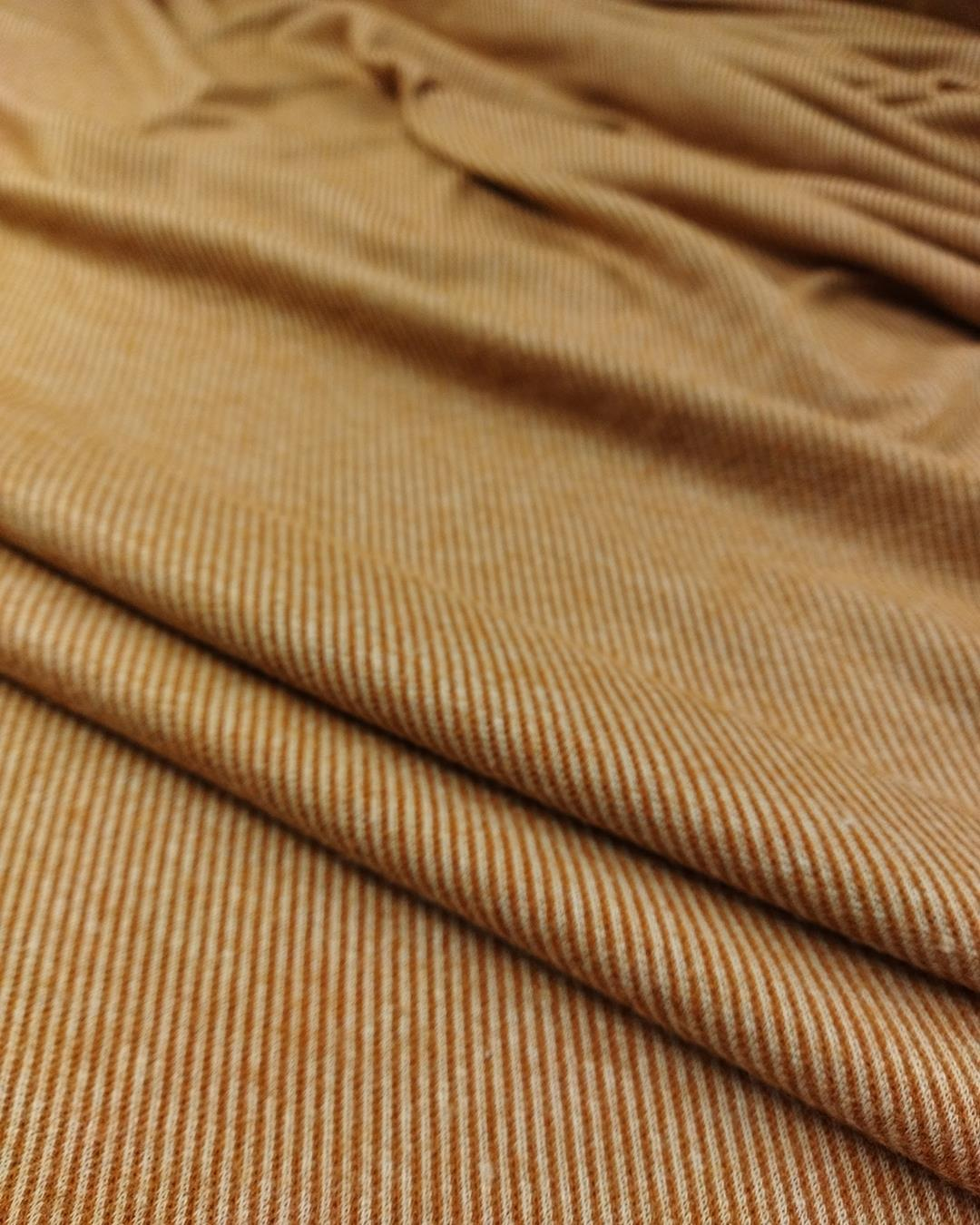 Verev bej tarçın çizgi geçişli, yumuşacık ve esnek hafif havlı yüzeyde çok hoş bir örme, elbise, etek, bluz, tünik, sweat shirt her şey harika olur.