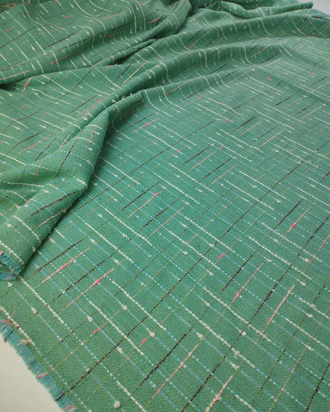 Turkuaz fonda ekoseli çok cici bir şanel, etek, ceket, kap çok hoş olur. Ebat: En 150 cm x Boy 230 cm Stok birimi adet.